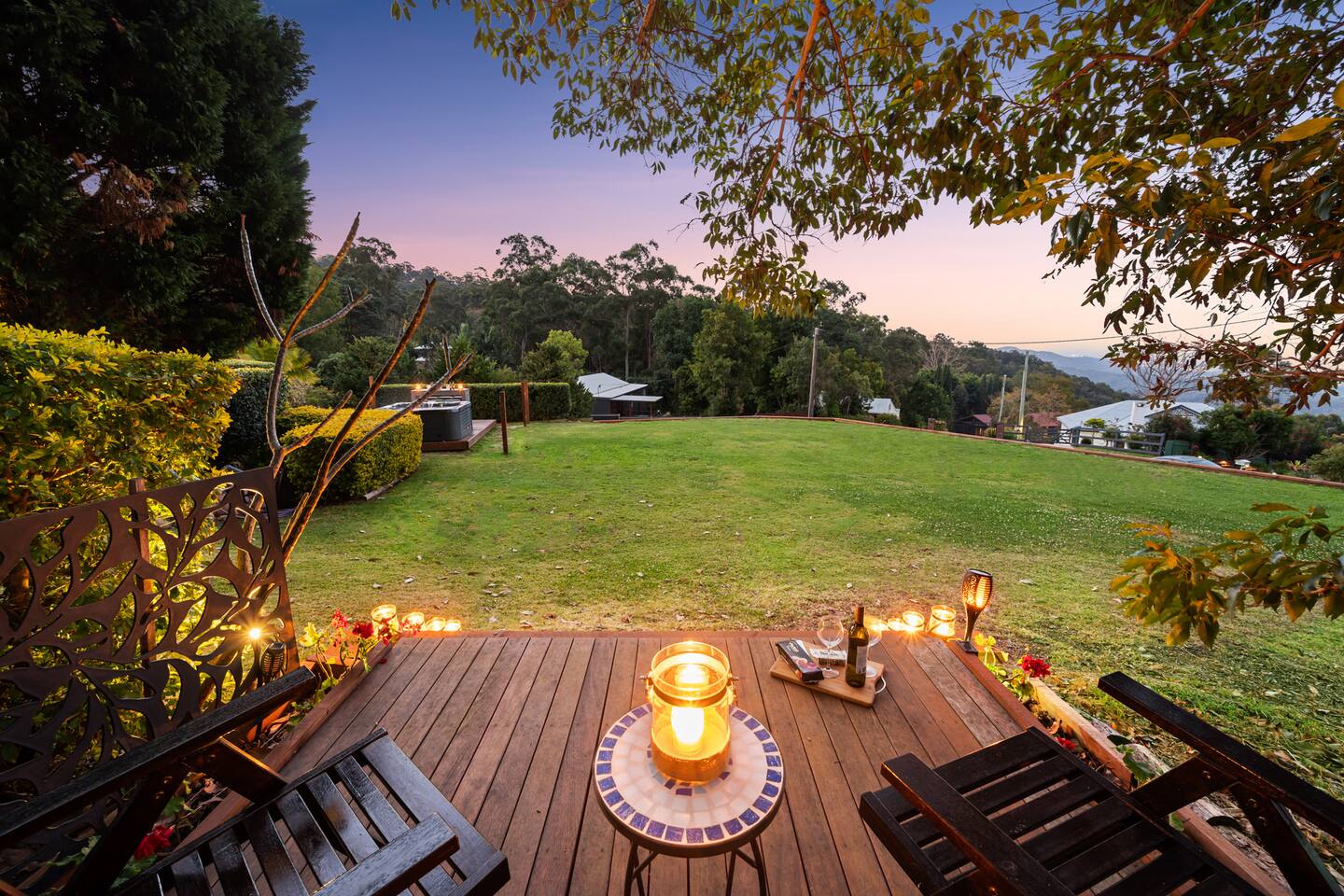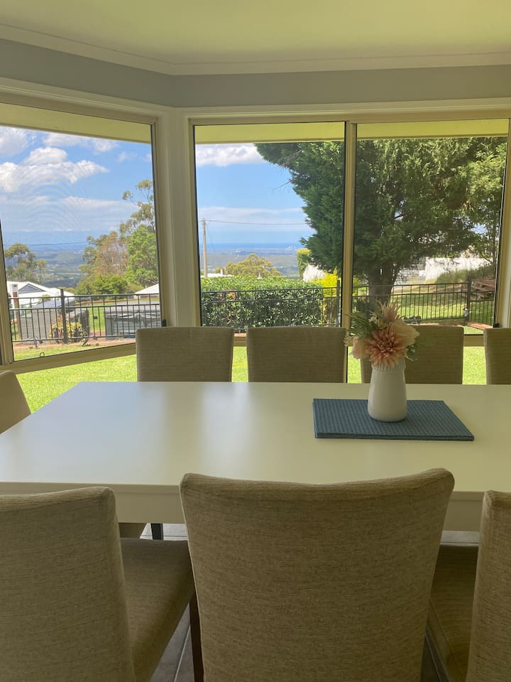 -5 bedrooms (2 bedrooms with an ocean view). -2 bathrooms -5 Air-conditioners in the house -FREE fast internet -FREE Netflix -BBQ and Pizza oven -Ping-pong table -Hot Tub with outdoor setting -Half an acre of flat land -12 minutes to Gallery Walk -10 minutes to Wineries -5 minutes to Golf Course -30 minutes to the Gold Coast beaches -1 hour to Brisbane -10-15 minutes to local waterfalls and attractions -The house is usually set-up for 10 guests or 11 if you have a kid. This lovely home does have a fireplace, however, firewood/firestarters are BYO. Firewood, fire starters and matches can be bought at either the local Mobil service station or the IGA. NOTE: if you're more than 10 please let me know in advance so that I can arrange the sofa-bed to be made for you. For the love and respect of our neighbours, it is important to note that NO parties are allowed.