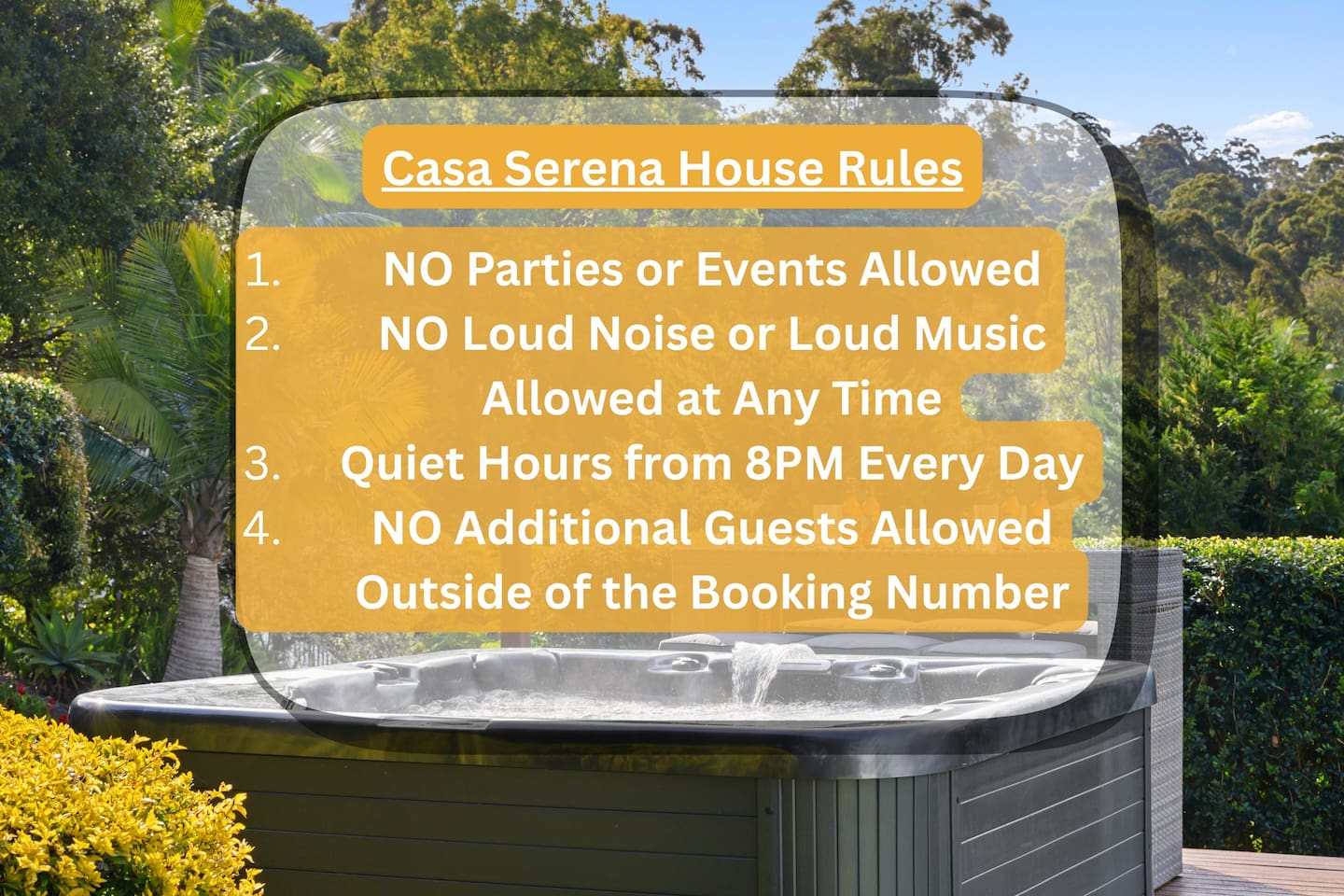 The house is located in a quiet residential cul de sac, so no parties or large gathering outside of the guests booked are permitted. When sitting outside in the evening, we would ask that you respect the neighbours by keeping voices low, and where possible move inside after 8pm.